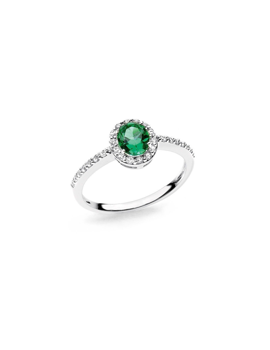 Anello in Oro Bianco con Zirconi Bianchi e Verde
