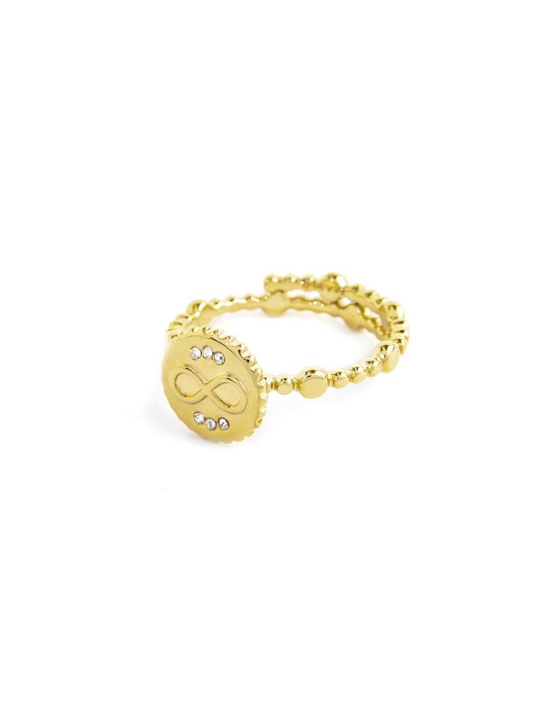 Anello Medaglietta Infinito con Cristalli in Acciaio
