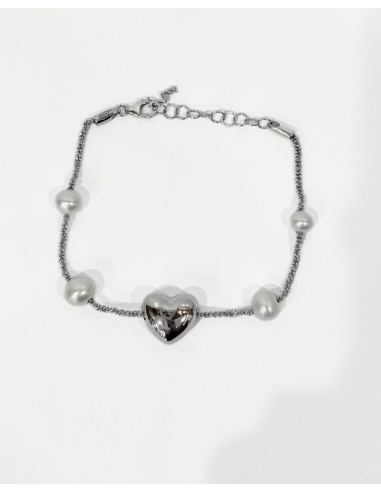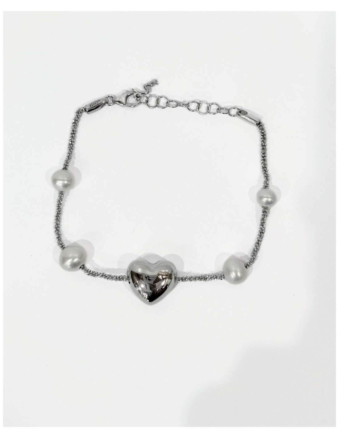 MilunaBracciale elegante in argento 925 con perle coltivate e centro a cuore in oro rosa 9 kt. Lunghezza regolabile.