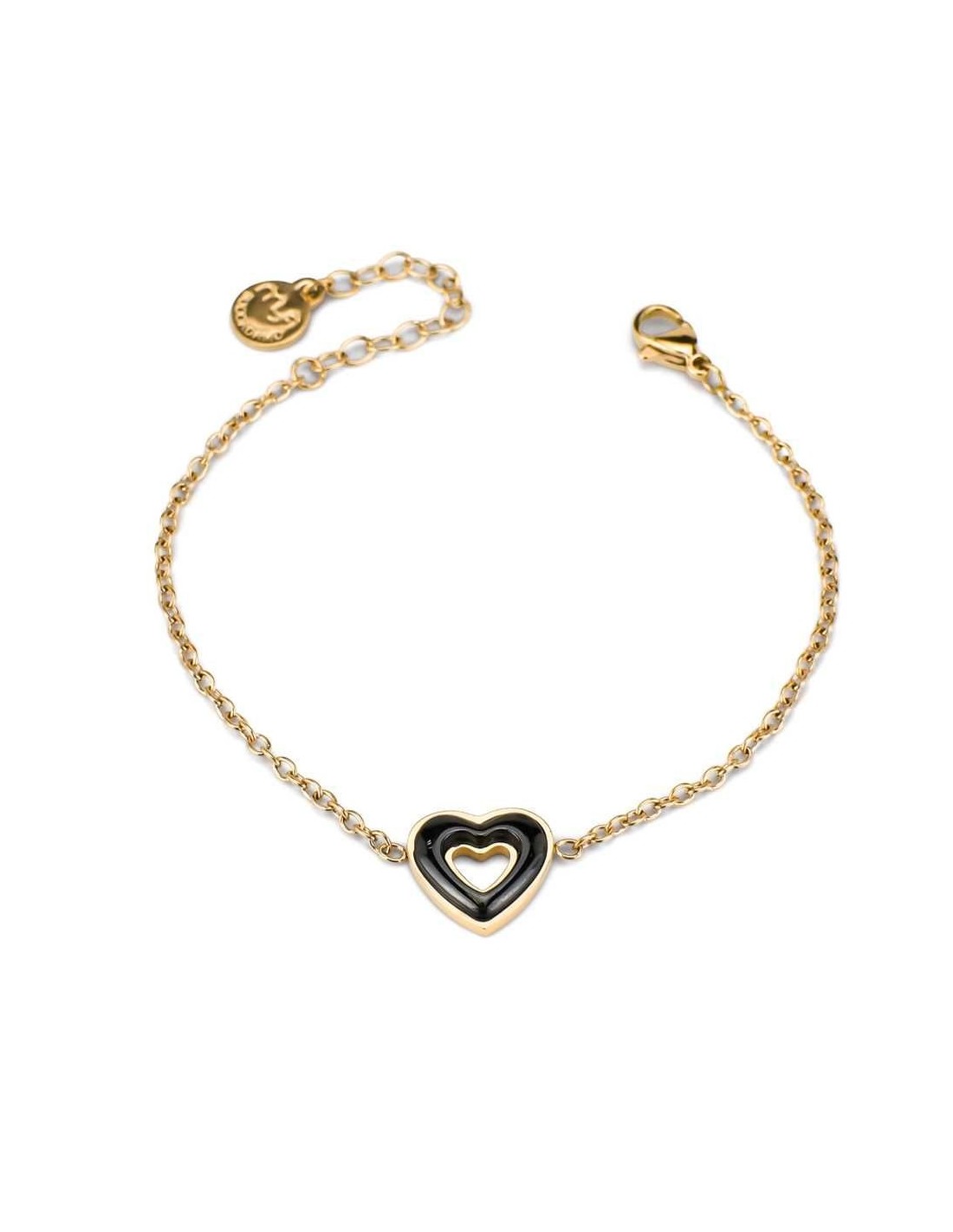 Un bracciale che parla il linguaggio dei sentimenti: il cuore placcato in oro giallo al centro cattura subito lo sguardo, simbolo di legami autentici e di eleganza senza tempo.