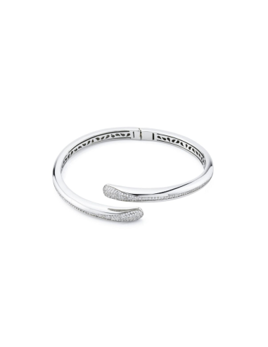 Bracciale contrarié in bronzo rodiato con doppio pavé di zirconi a forma di goccia. Elegante, luminoso e dal design moderno.