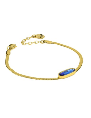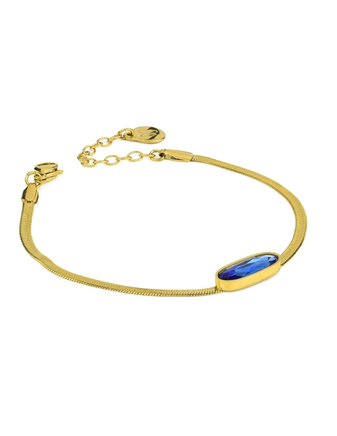Il bracciale morbido placcato oro della collezione Jolie unisce raffinatezza e praticità, perfetto per chi ama un gioiello versatile da indossare ogni giorno. Realizzato in acciaio placcato oro giallo, il bracciale presenta una maglia piatta sottile e un cristallo centrale sfaccettato, disponibile in diverse tonalità: acquamarina, bianco, verde, blu, rosa e viola.