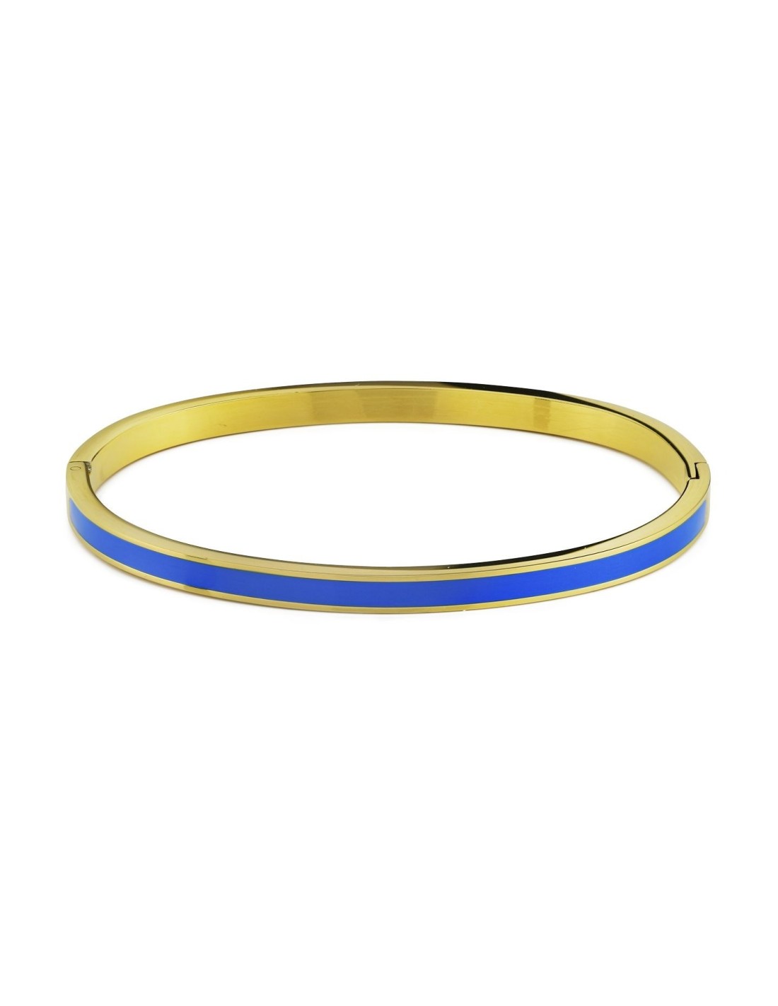 Bracciale rigido in acciaio placcato oro giallo con smalto lucido. Design moderno e versatile, disponibile in lilla, fucsia, blue e rosa.