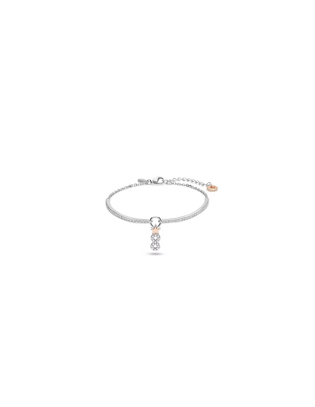 Il design semitennis, delicato e luminoso, avvolge il polso con naturale eleganza, creando un effetto sofisticato e senza tempo. Al centro, il numero “8”, realizzato in argento 925‰ con doratura rosé, è impreziosito da zirconi bianchi che riflettono la luce con brillantezza intensa, esaltando ogni movimento con un tocco prezioso.