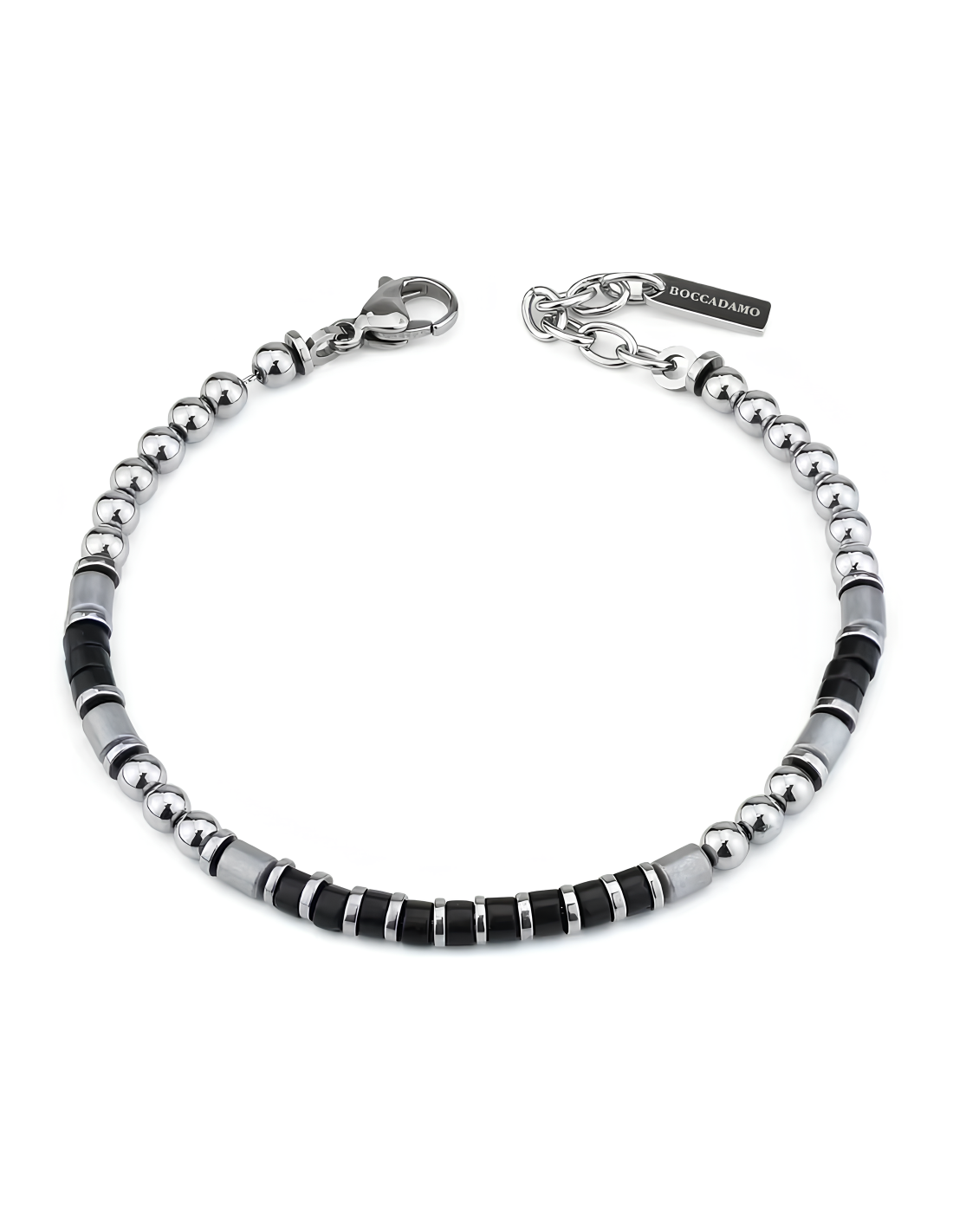 Il bracciale uomo ABR686N della linea Man di Boccadamo è un accessorio che unisce eleganza discreta e stile contemporaneo, pensato per l’uomo moderno che ama distinguersi senza ostentazione. Le perline di agata nera, profonde e lucide, si alternano armoniosamente agli elementi in ematite, creando un raffinato gioco di contrasti tra opacità e luce, durezza e morbidezza tattile.