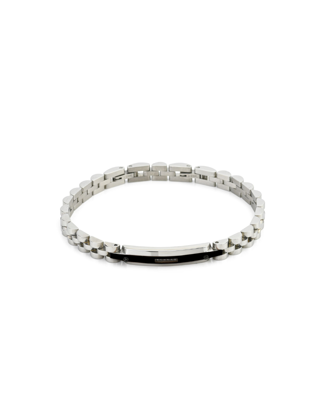 Bracciale modulare in acciaio 316L anallergico, con centrale in PVD nero o placcato oro rosa impreziosito da zirconi bianchi. Un gioiello dallo stile contemporaneo e maschile, che unisce forza e raffinatezza.