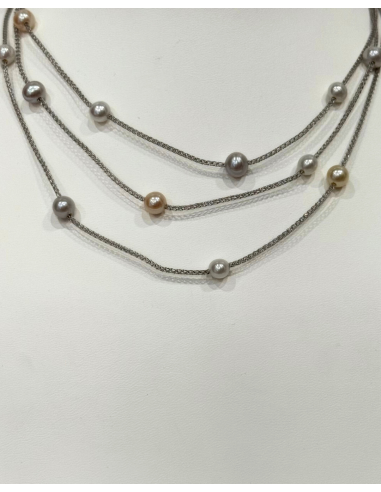Collana a tre fili in argento 925 arricchita da perle vere Oriente di diverse dimensioni. Un design elegante e scenografico per ogni occasione.