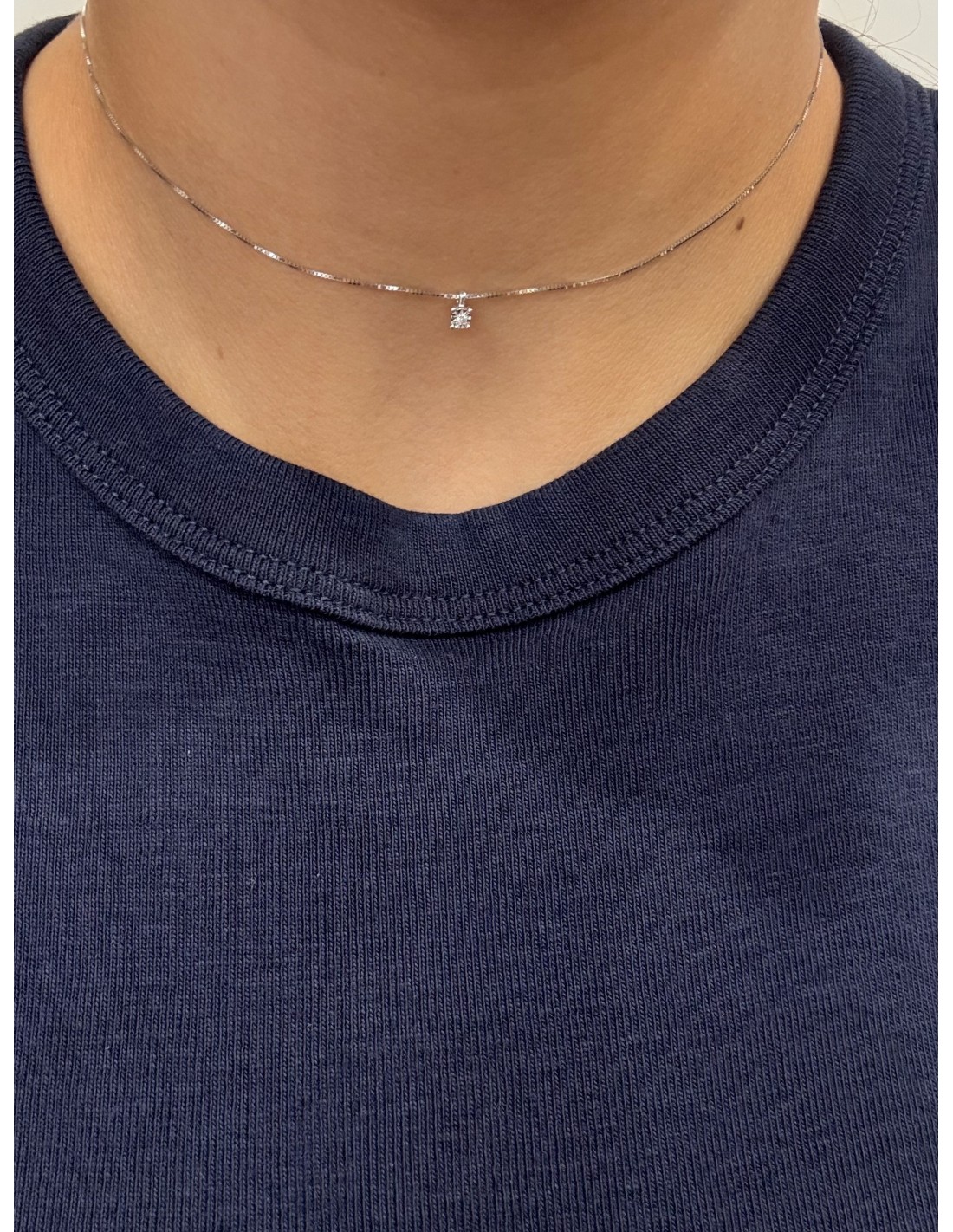 Collana Miluna in oro bianco 18Kt con diamante naturale. Un gioiello raffinato che illumina ogni momento speciale.