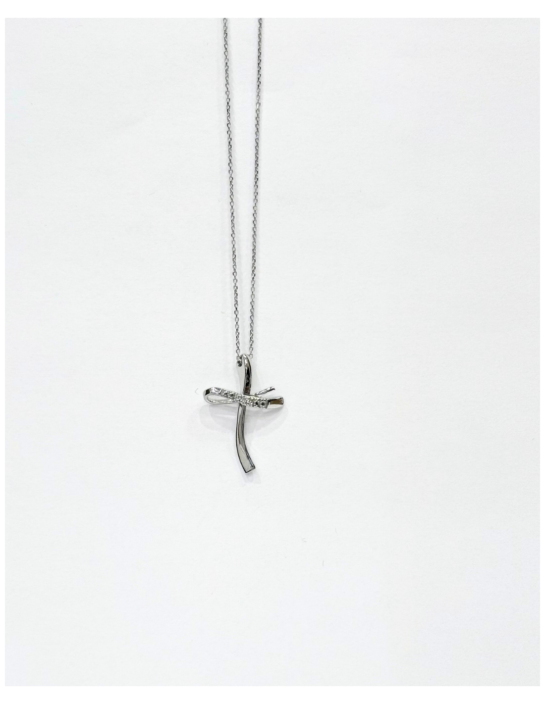 Collana in Oro Bianco con Croce e 3 Diamanti
