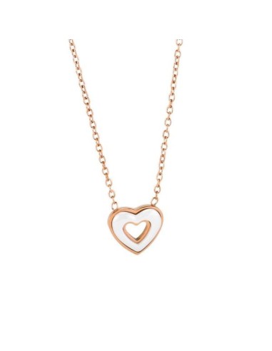 Collana in acciaio rodiato, placcata oro rosa, con cuore in ceramica bianca lucida. Un gioiello luminoso e femminile, perfetto da indossare ogni giorno.