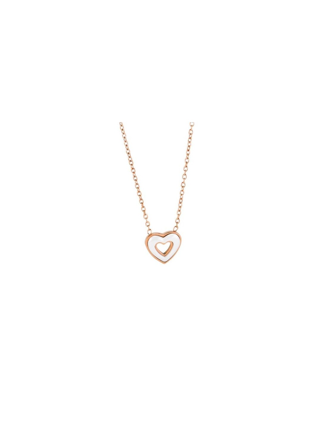 Il ciondolo a forma di cuore (13x12 mm) racchiude un messaggio di amore e purezza, reso ancora più sofisticato dal bagliore caldo dell’oro rosa che impreziosisce la finitura della catena. La lunghezza regolabile da 38 a 43,5 cm consente di adattarla facilmente a ogni look, mentre la chiusura con moschettone garantisce praticità e sicurezza.