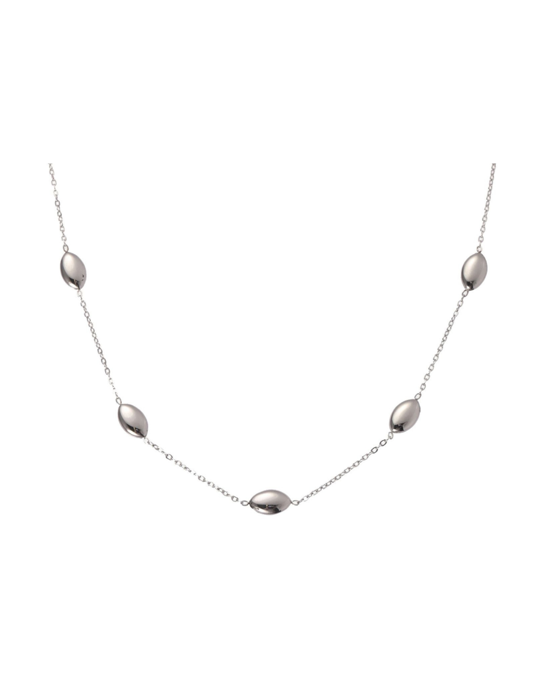 Cinque chicchi di riso si allineano al centro come un filo di perle contemporaneo, levigati e lucidi, morbidi e brillanti. Nella versione placcata oro giallo emanano un bagliore caldo e radioso, mentre nella variante rodiata si trasformano in punti luce chiari e moderni, discreti e sofisticati.