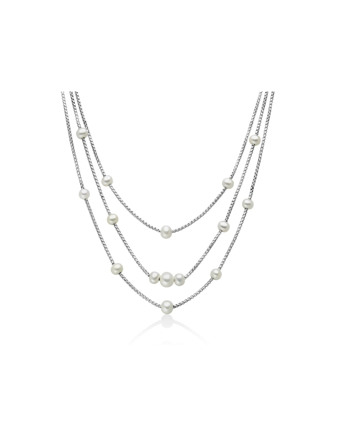 Collana in Argento a Tre Fili con Perle Vere Oriente