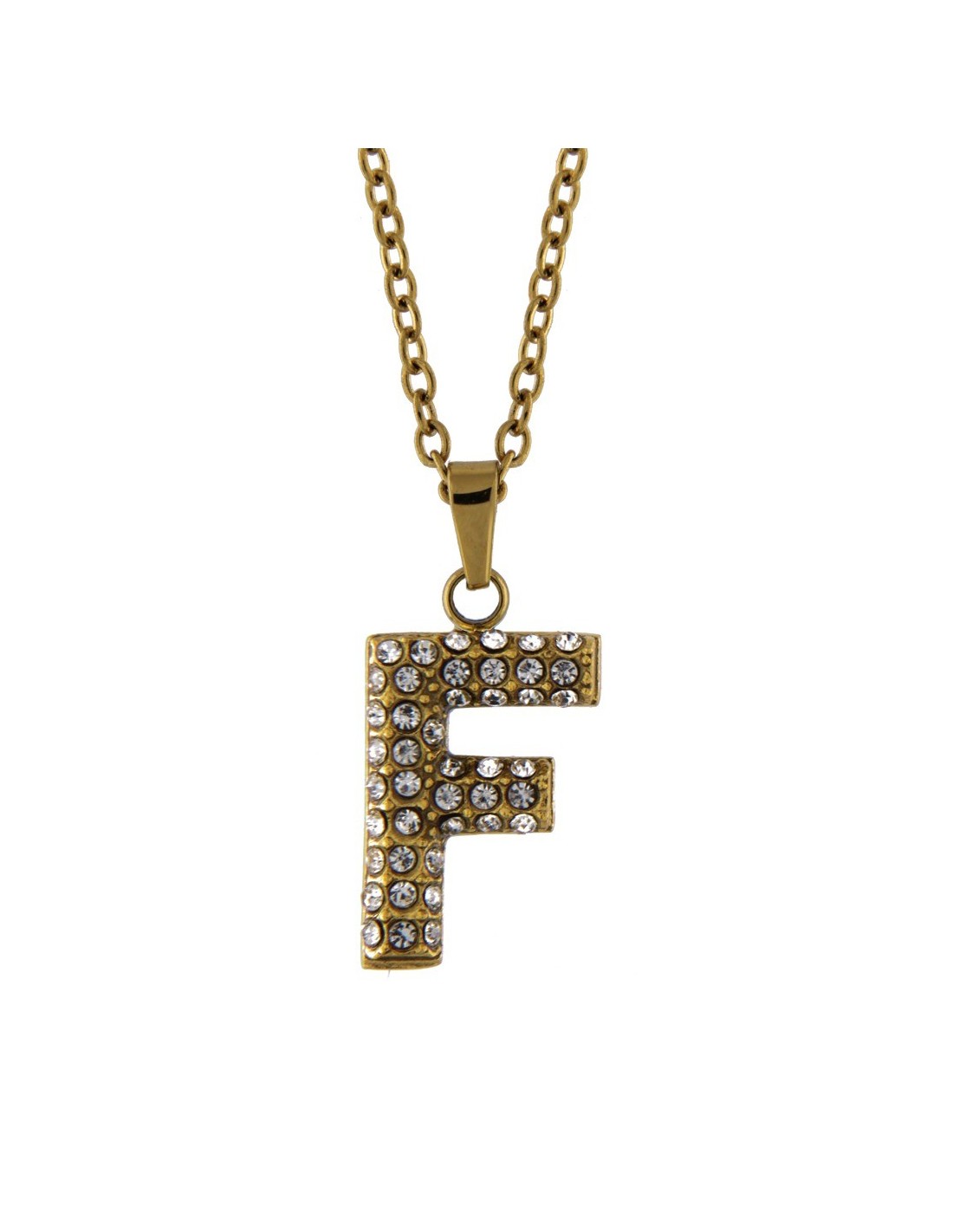 Collana con Pendente Lettera F in Acciaio