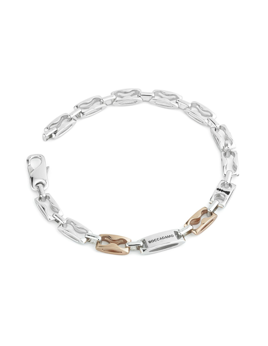 Un dettaglio può raccontare una storia, e questo bracciale lo fa con carattere e stile. Realizzato in argento microfuso, si distingue per la sua struttura solida e raffinata, dove ogni maglia rivela una cura artigianale attenta e precisa. Al centro, la firma Boccadamo diventa simbolo di identità e stile, elemento distintivo che conferisce valore e personalità.