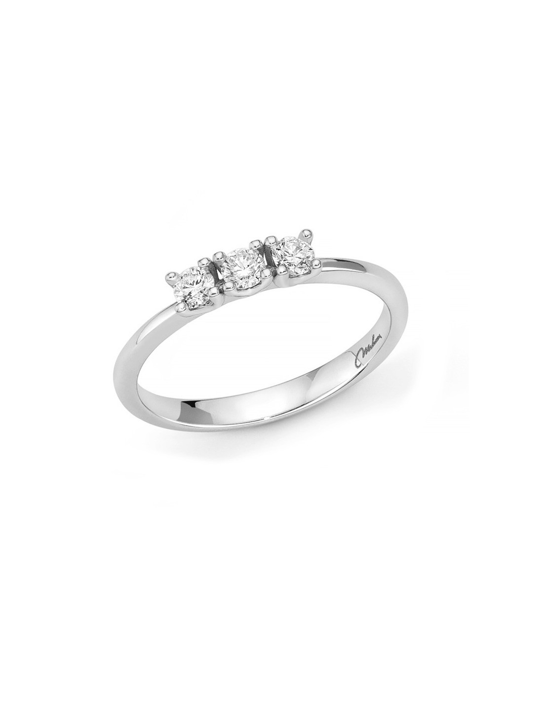 Anello Trilogy Miluna in oro bianco 18Kt con tre diamanti naturali taglio brillante rotondo, 27 punti. Eleganza e significato profondo.