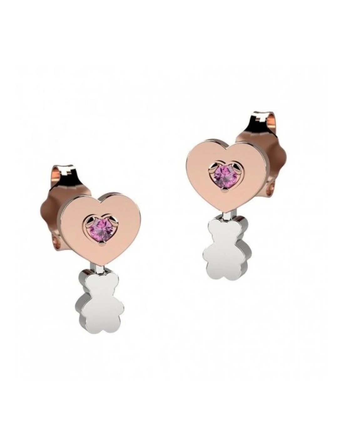 Orecchini Bambina Nanàn in Argento, Cuore con Diamantino e Orsetto Tato