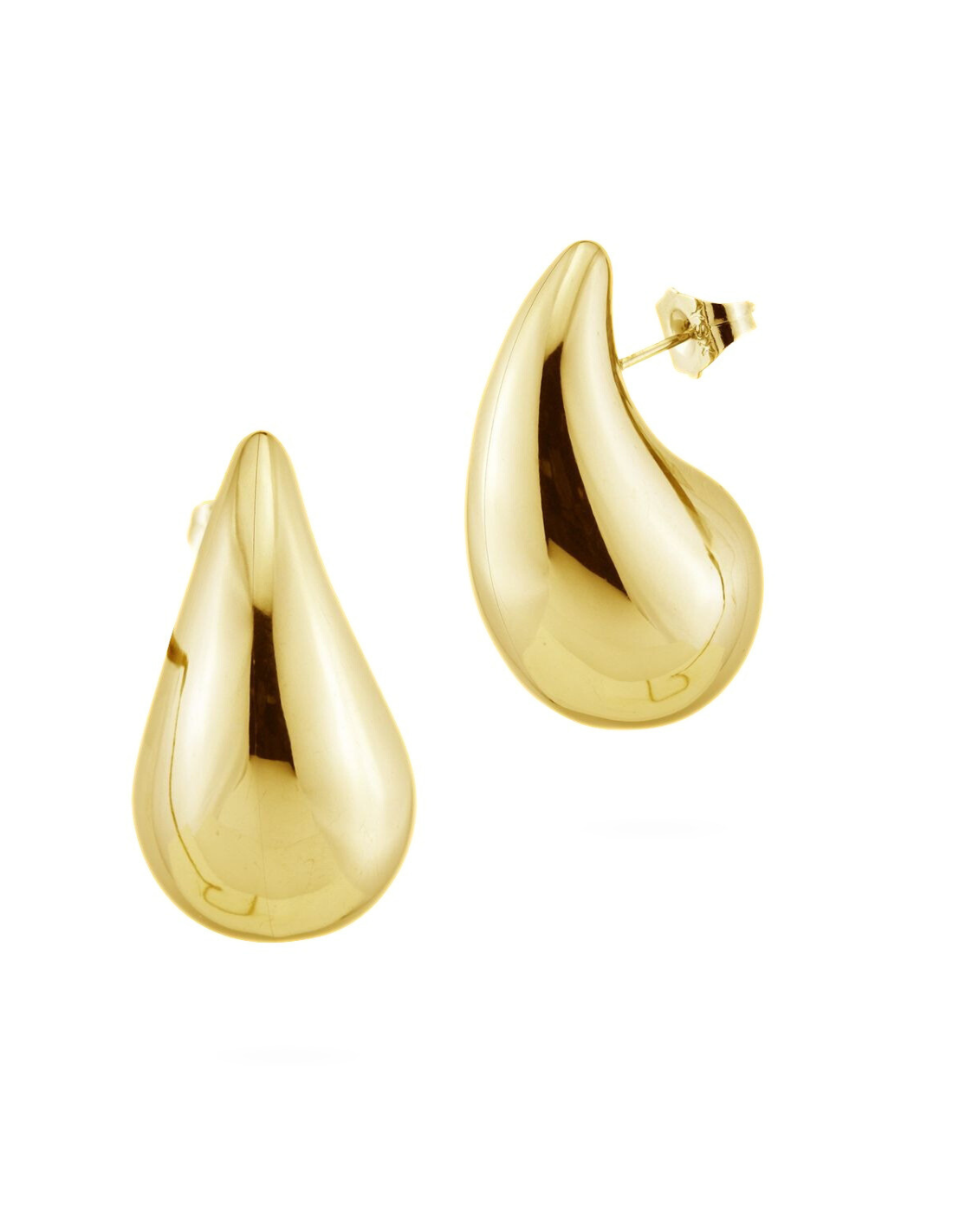 Realizzati in acciaio anallergico placcato oro giallo, offrono una brillantezza duratura e una finitura liscia e uniforme che esalta i riflessi dorati. La forma a goccia si adagia delicatamente sul lobo, seguendo le linee del viso con equilibrio e armonia.