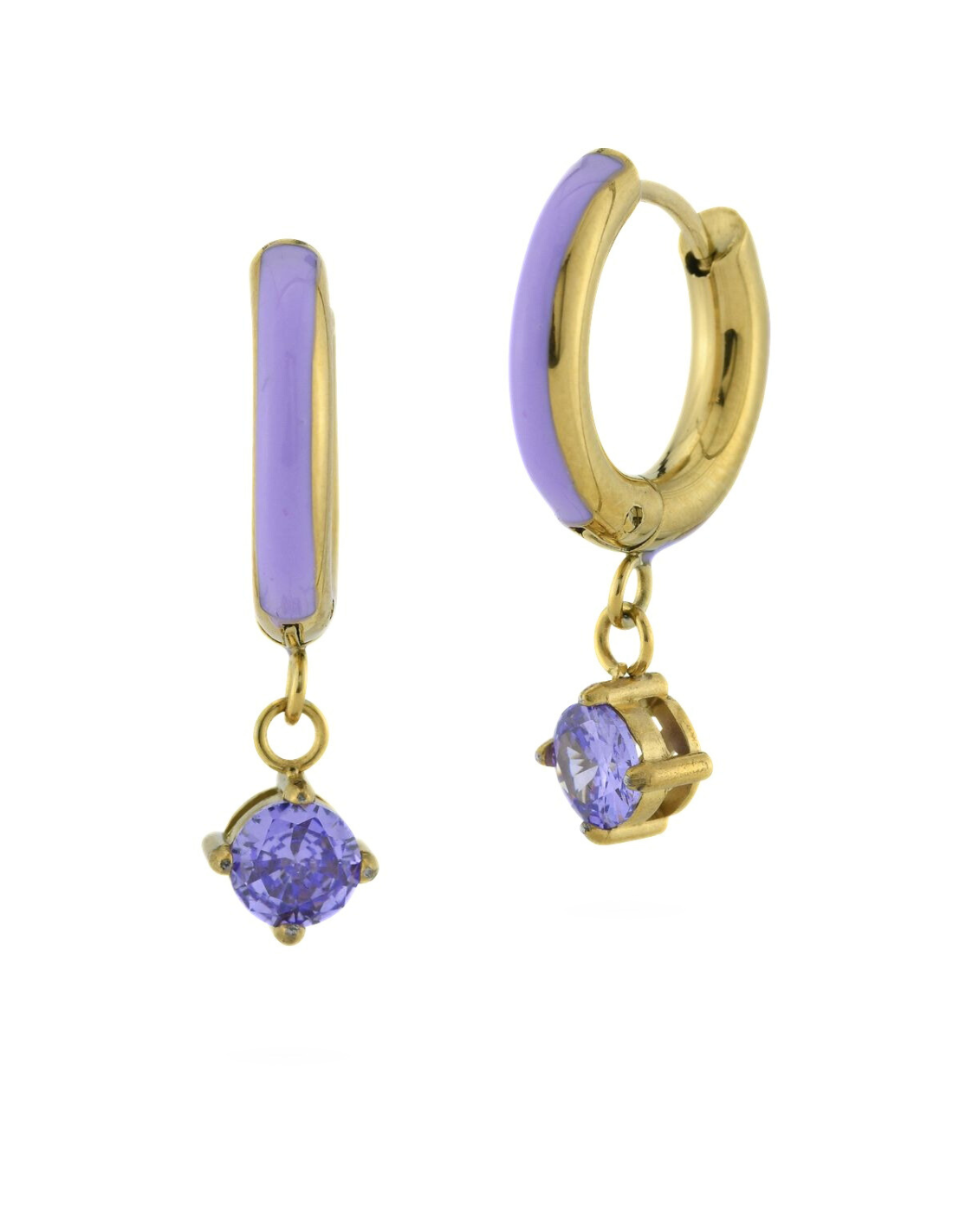 Gli orecchini sono realizzati in acciaio placcato oro giallo con smalto e zircone color tanzanite.