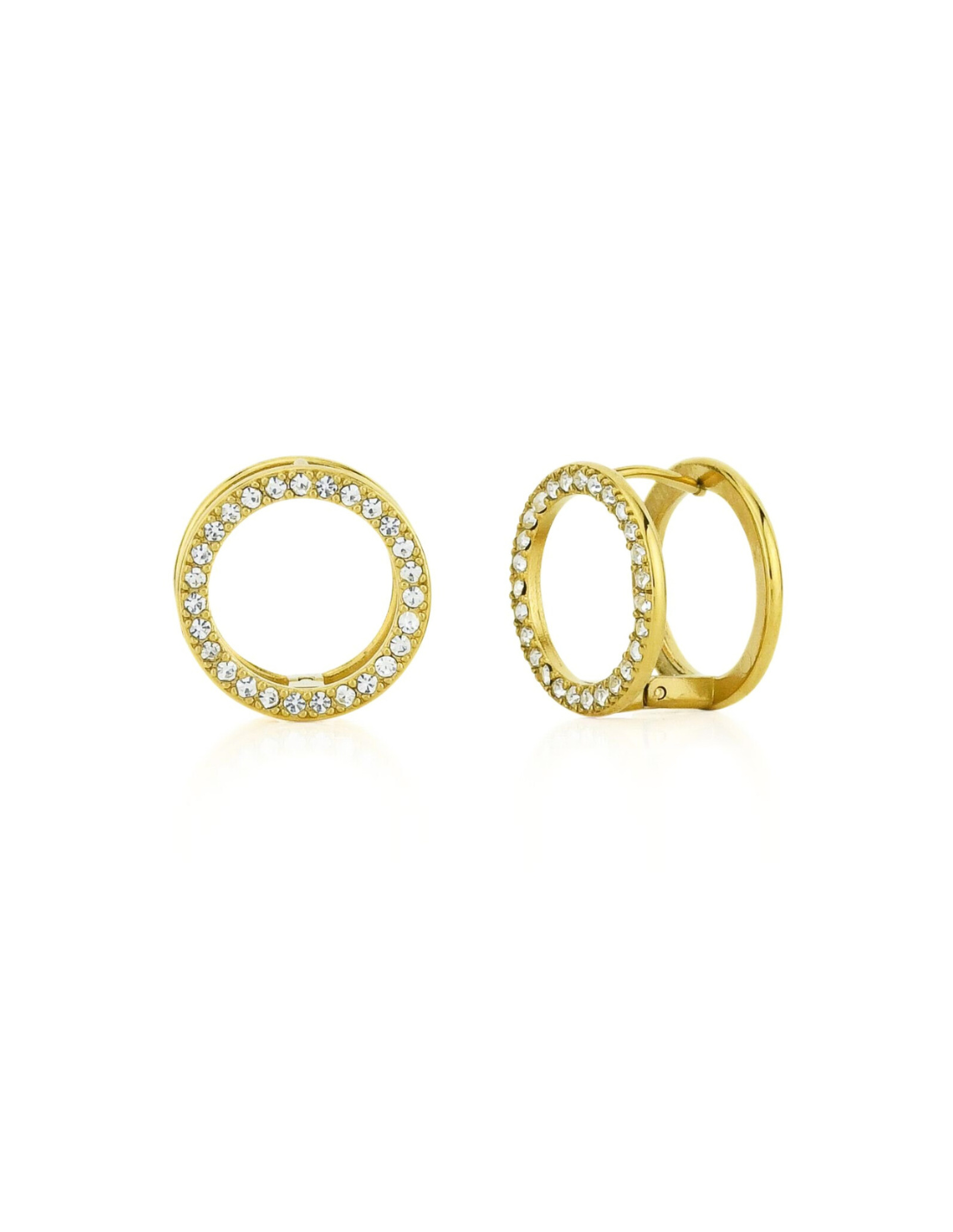 Orecchini Donna Cerchio Vuoto con Strass in acciaio oro giallo o rodio | Gioielleria Usai