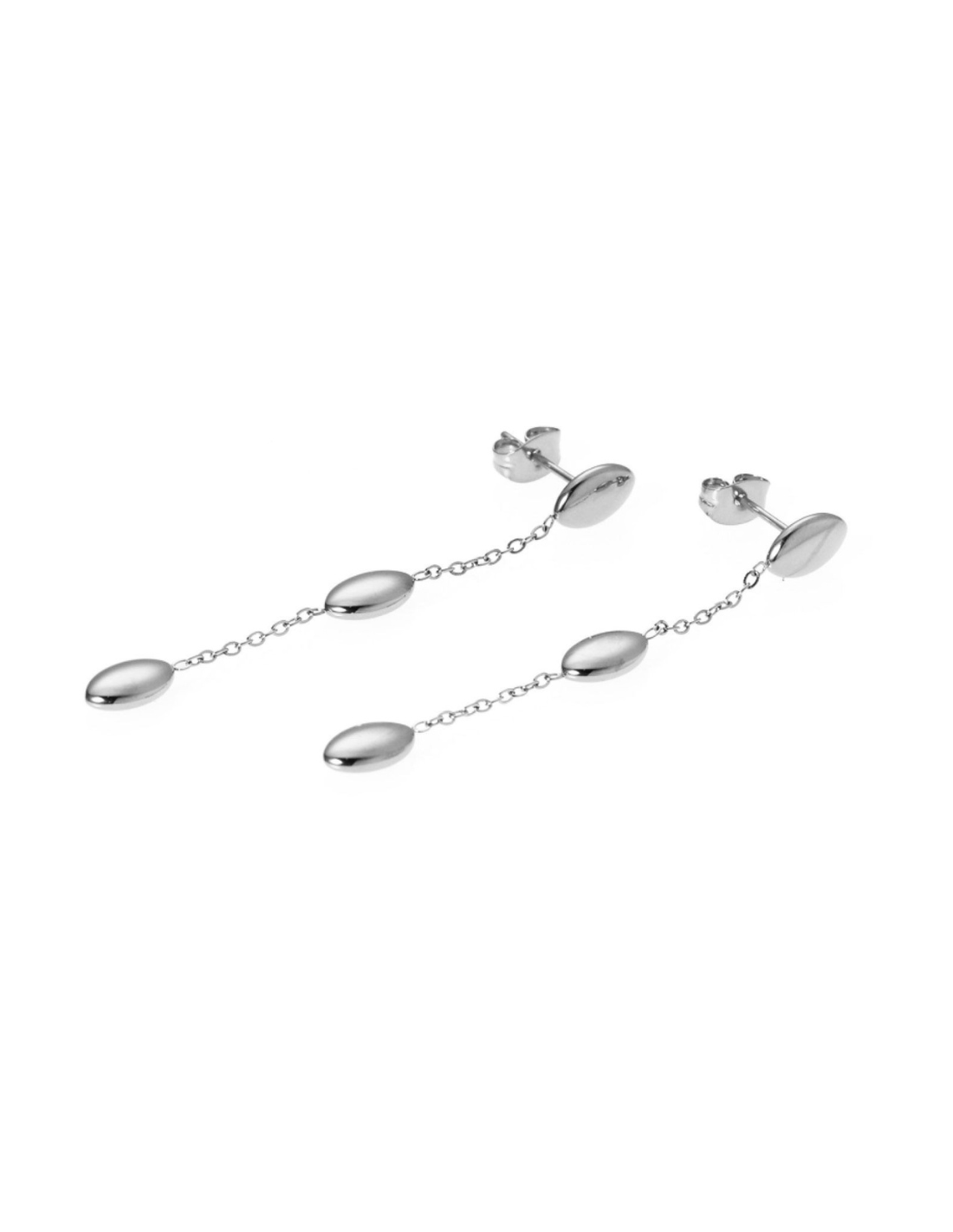 L’acciaio placcato, disponibile sia in caldo oro giallo che in raffinata finitura rodiata, accarezza la luce con superfici levigate e morbide, regalando un tocco luminoso che resta discreto ma mai anonimo. Un gioiello che si inserisce in modo armonioso nel quotidiano, elevandolo con un soffio di freschezza moderna, ideale anche come regalo.