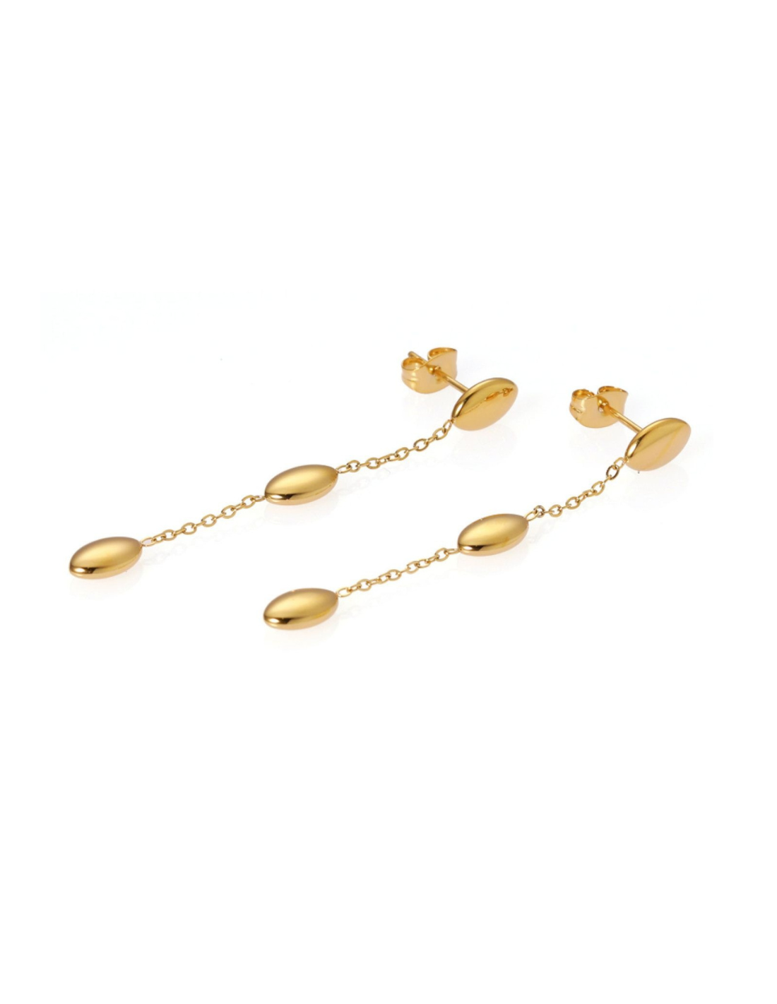 Gli Orecchini della collezione Sbarazzina creano un movimento morbido e sinuoso. I tre elementi a cascata, ispirati alla forma del chicco di riso, raccontano di una femminilità spontanea, giovane, naturalmente brillante.