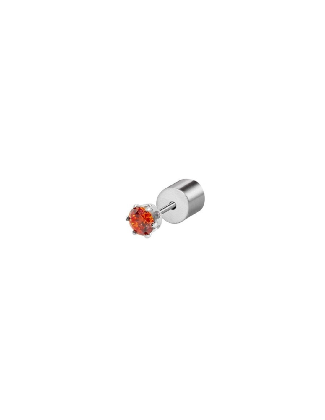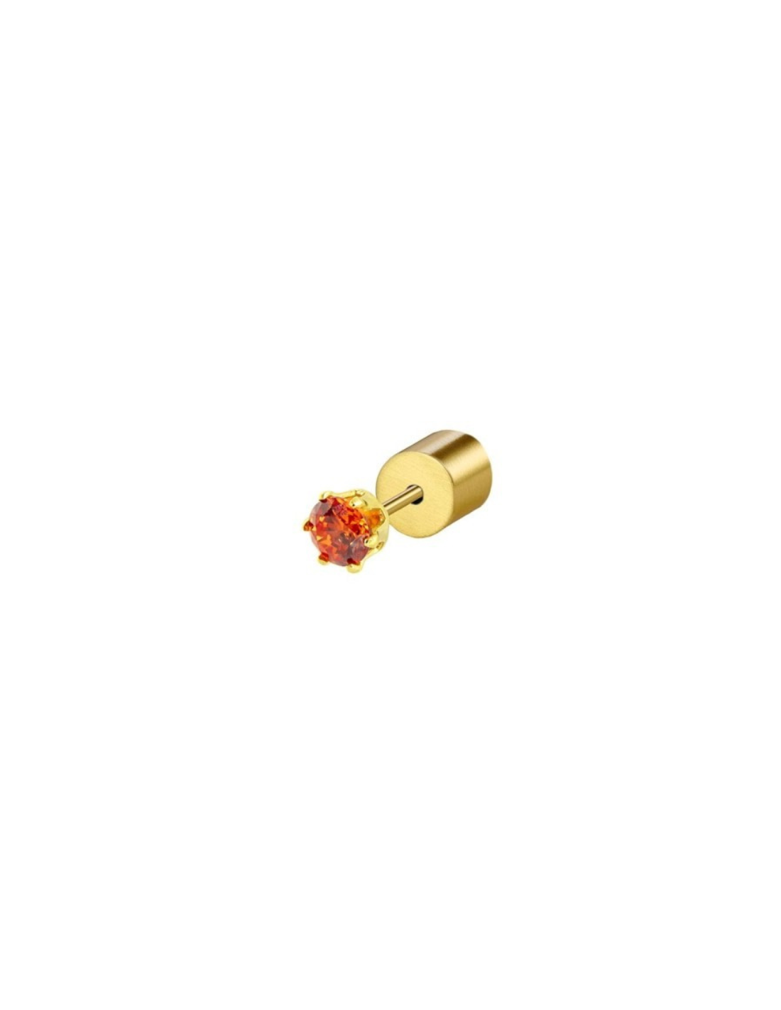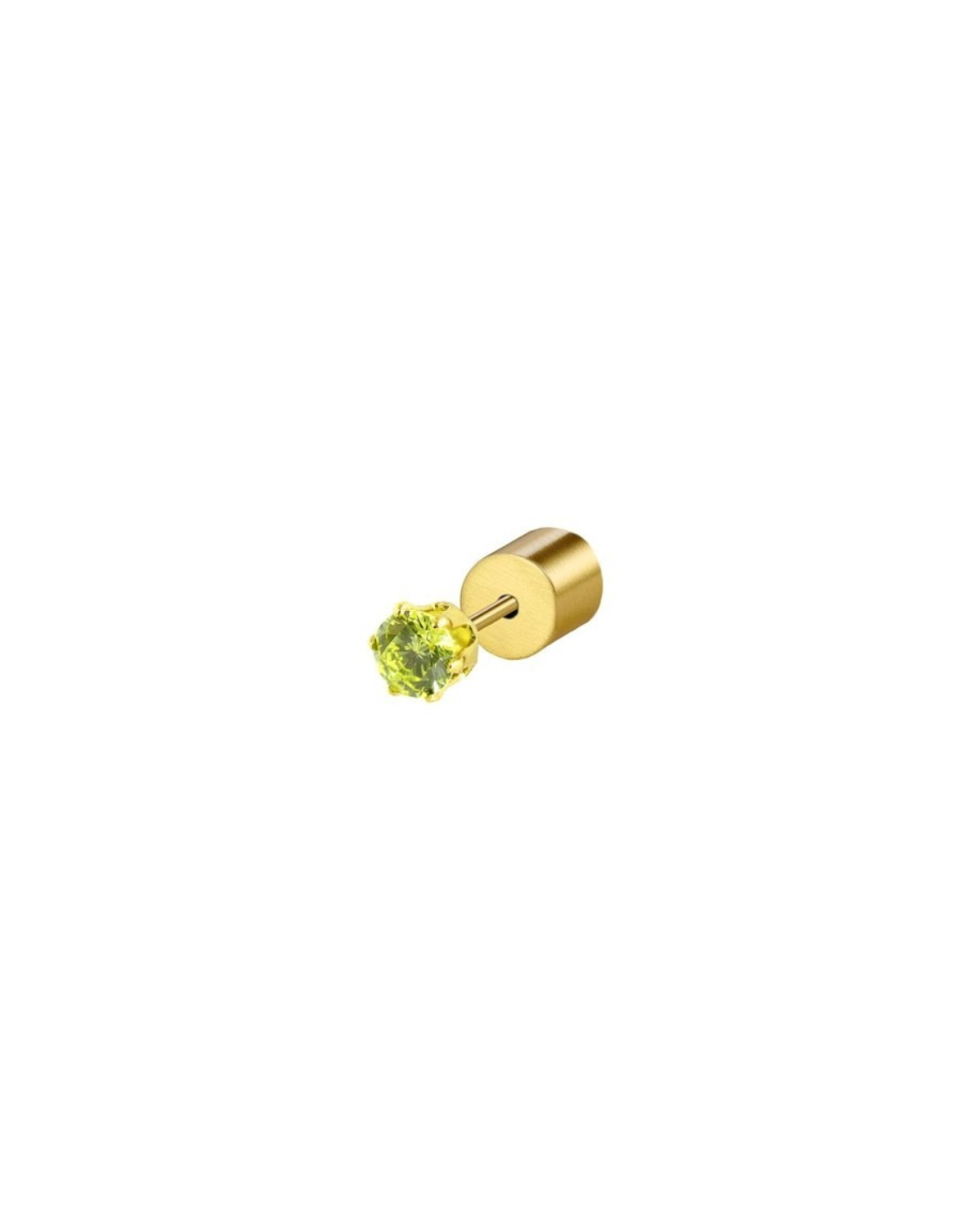 Mono orecchino a lobo con cubic zirconia da 3 mm, disponibile in più varianti colore e finiture acciaio o PVD oro giallo. Prezzo riferito al singolo pezzo.
