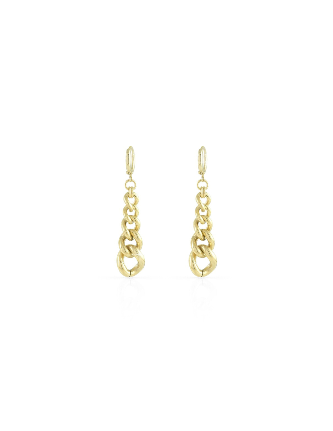 La finitura in oro giallo 24k, luminosa e brillante, valorizza il design allungato e dona calore a ogni movimento, mentre la lavorazione lucida esalta i giochi di luce tipici delle maglie grumetta. Con una lunghezza di 5,70 cm, questi orecchini slanciano delicatamente il volto, rivelando uno stile deciso ma assolutamente elegante.